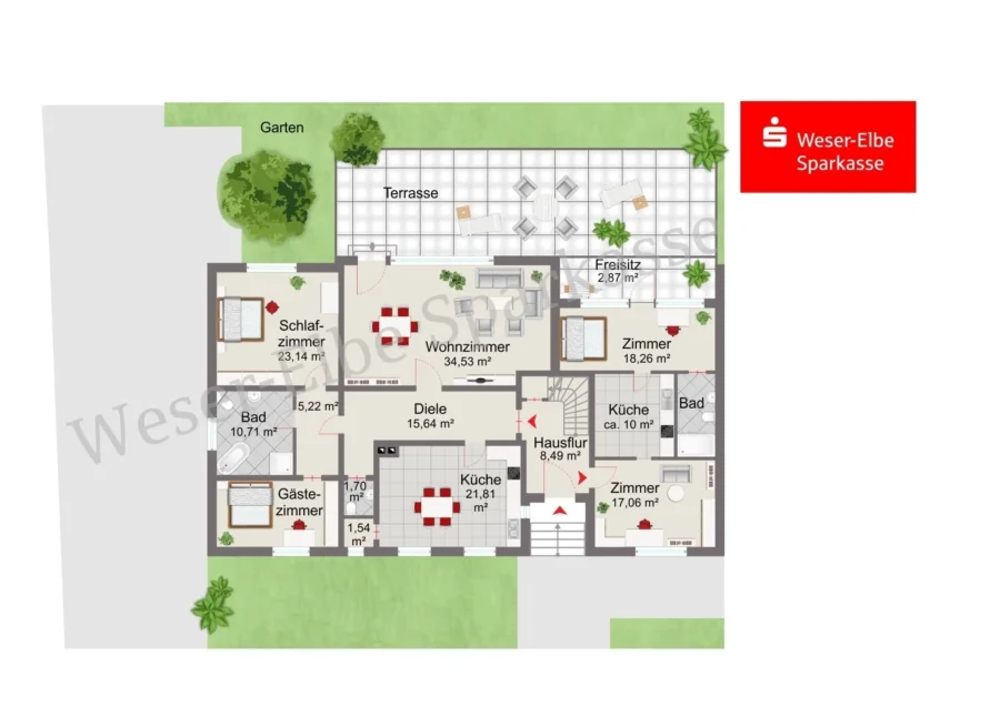 • Lage: vollständig im Erdgeschoss