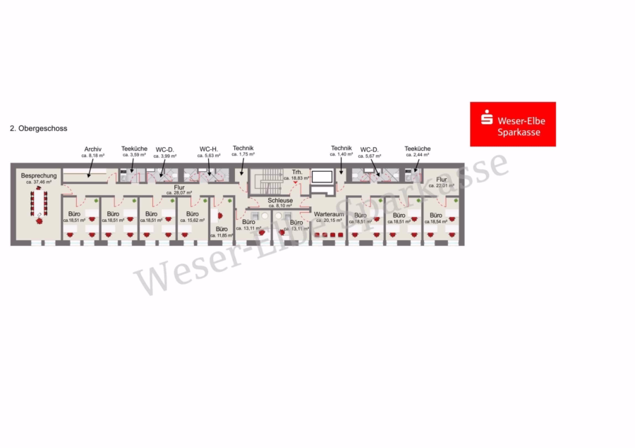 • 10 Büroräume, ein Sitzungszimmer sowie eine Wartezone
