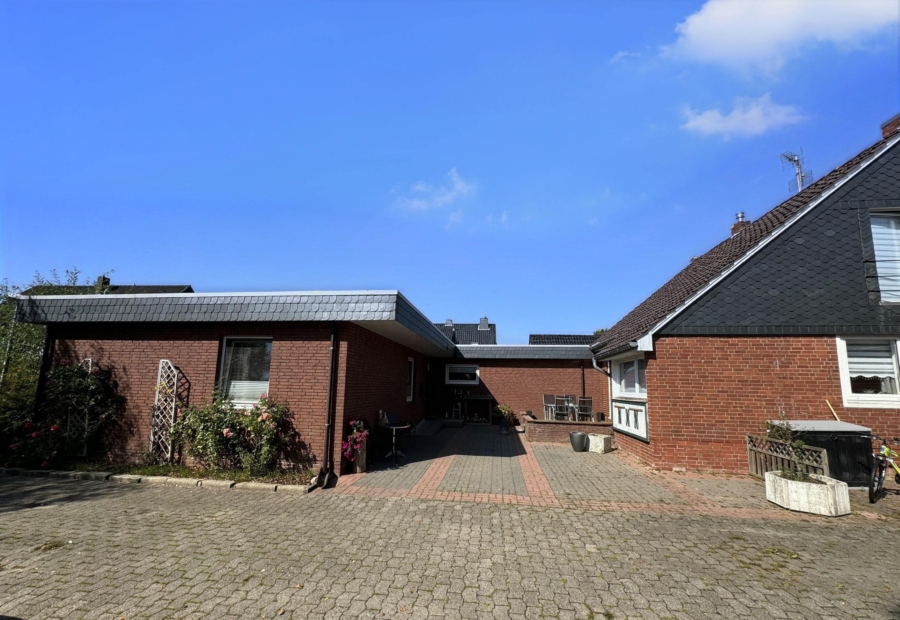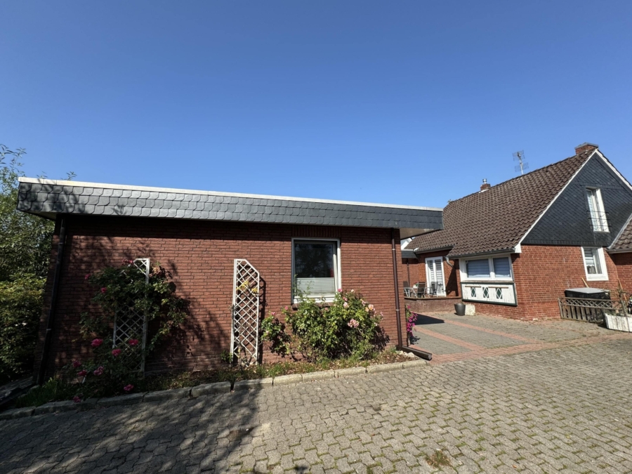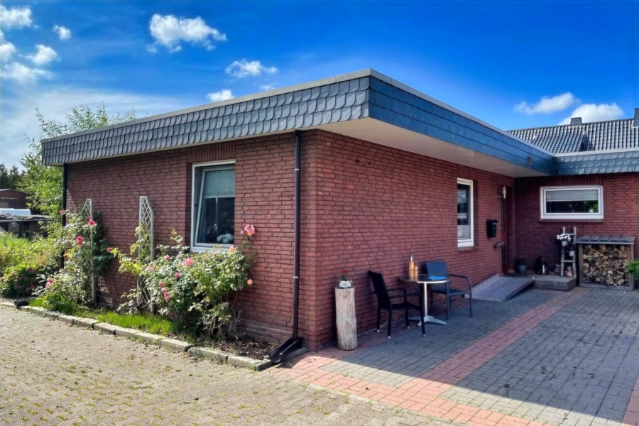 Sie suchen ein neues Zuhause mit einem barrierearmen Zugang und allen Räumen auf einer Ebene? Dann könnte dieser Winkelbungalow mit Flachdach in einer wenig befahrenen Seitenstraße am Ortsrand von Dorum auf einem schönen eingewachsenen Grundstück genau die richtige Immobilie für Sie sein.