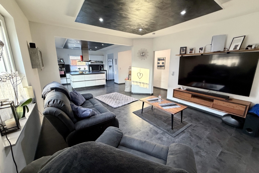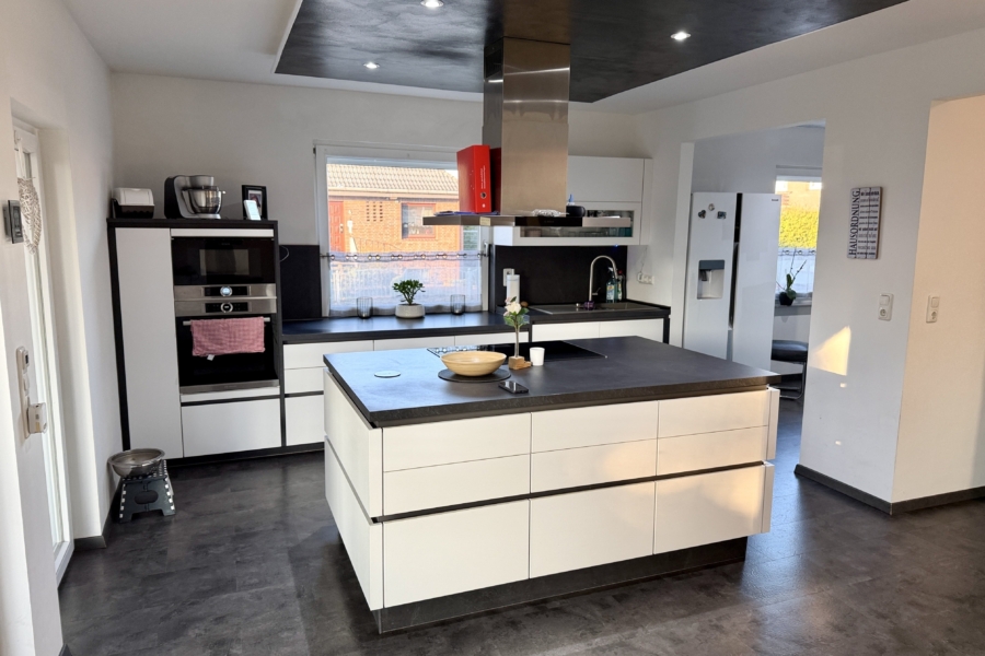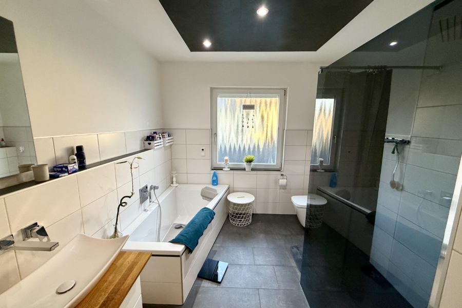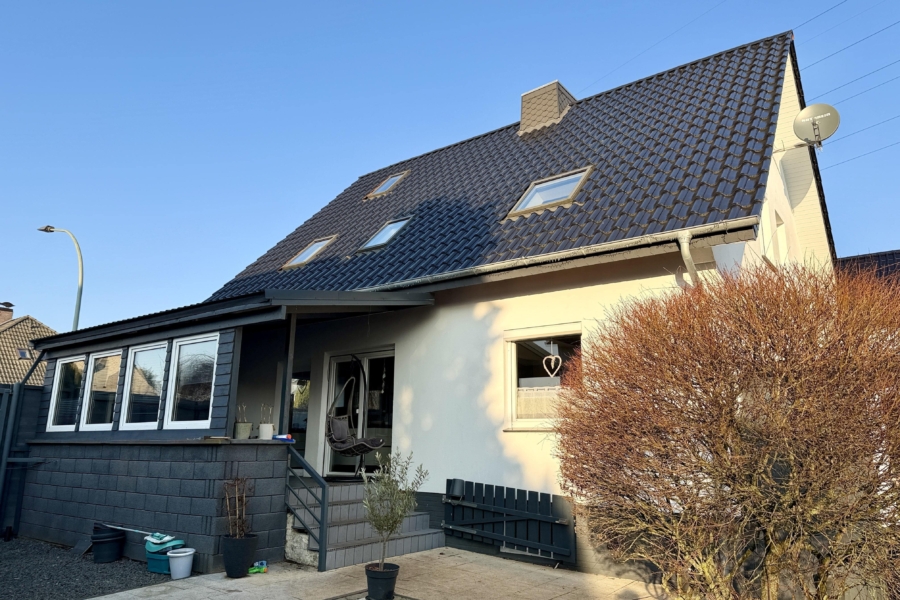 Was will man mehr? Angucken, schön finden, einziehen. Das könnte bei diesem großzügigen Haus zutreffen. Das ursprünglich ca. 1960 erbaute Einfamilienhaus wurde seit 2011 umfassend renoviert und umgebaut, sodass es sich jetzt in einem bezugsfertigen Zustand befindet. Mit knapp 155 m² Wohnfläche bieten sich viele Nutzungsfreiräume verteilt auf Erd- und Dachgeschoss. Im Erdgeschoss befindet sich ein beindruckender Wohn- und Essbereich mit integrierter Küche und Kochinsel. Dazu gesellt sich ein zeitgemäßes Vollbad, Schlafzimmer mit angebundenen WC, sowie ein Hauswirtschaftsraum. Das Dachgeschoss bietet dann noch zwei vollwertige Zimmer und zwei kleinere Zimmer. Ergänzt wird das Dachgeschoss um ein weiteres Vollbad.