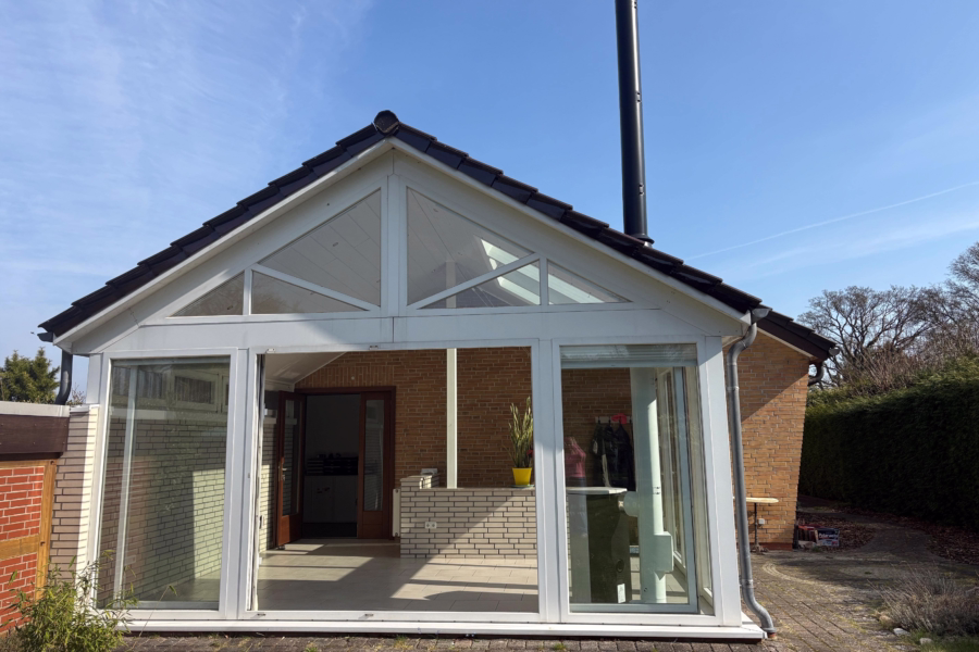 Großer Garten mit Gartenpavillon, Wintergarten aus 1994 mit Kaminofen aus dem Jahr 2023, Außenwanddämmung mit Schaum in 2010, Heizung aus 2015.
