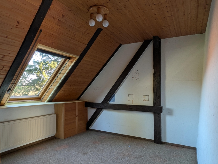 Ein großzügiger, offener Wohn- und Essbereich mit Kaminofen sorgt für eine besondere Atmosphäre und bietet vielfältige Gestaltungsmöglichkeiten. Das Haus ist teilunterkellert.