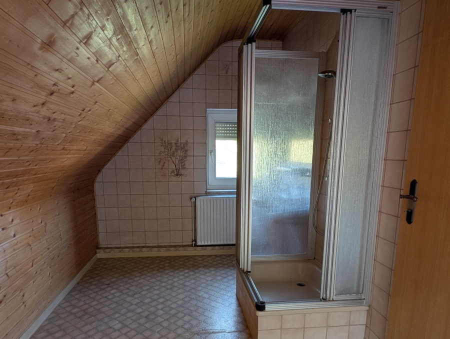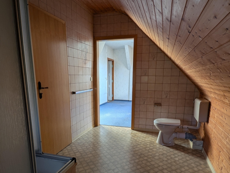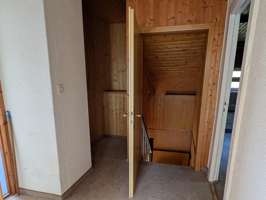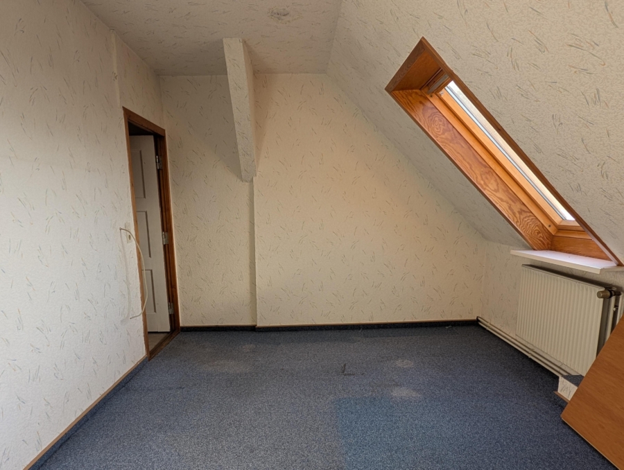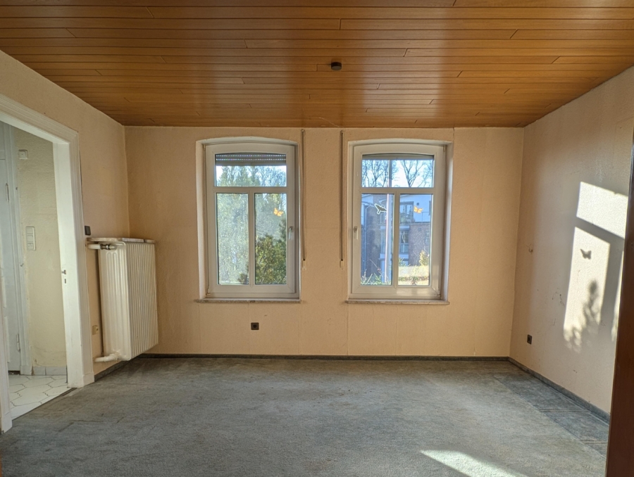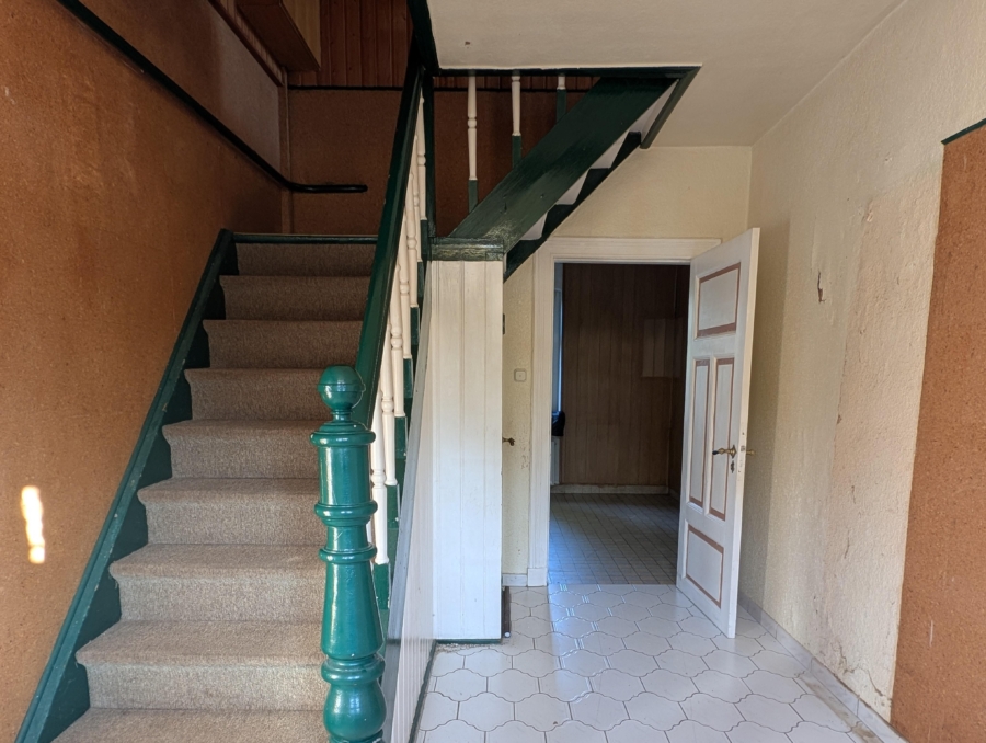 Das Objekt ist vollumfänglich sanierungsbedürftig – sowohl im Innen- als auch im Außenbereich besteht Instandsetzungsbedarf. Die Fenster sind aus Kunststoff, die Eingangstür aus Holz mit historischer Optik. Das Dach ist als Satteldach mit Betonsteineindeckung ausgeführt.