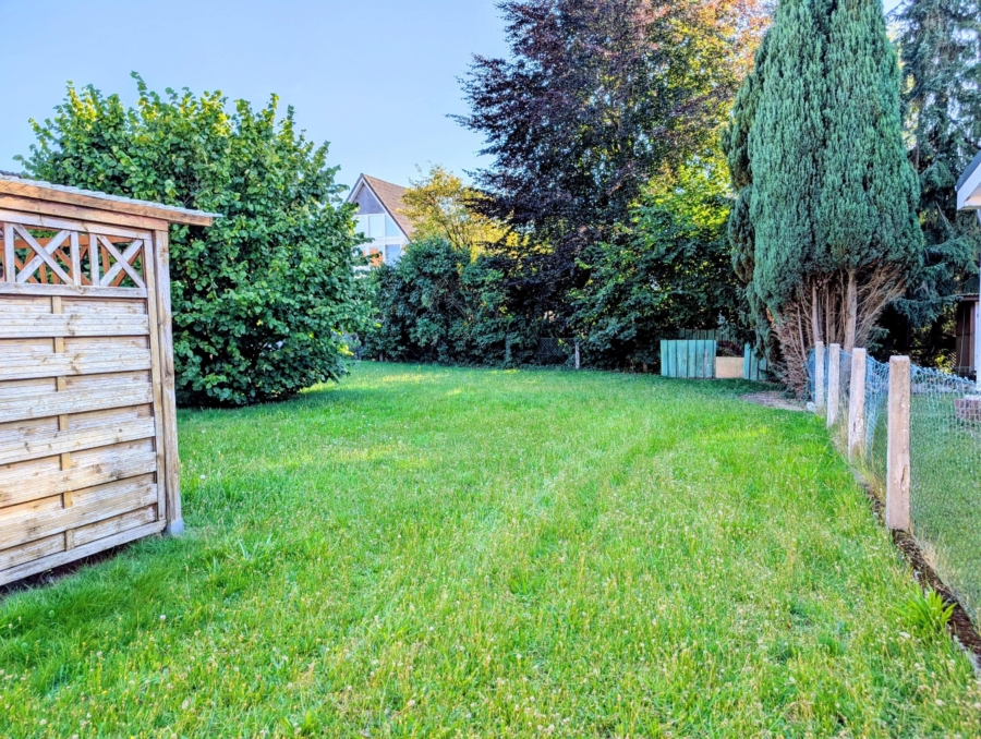 Im Außenbereich laden ein gepflegter Garten sowie eine sichtgeschützte Sonnenterrasse zum Verweilen ein. Auch ein kleiner Vorgarten gehört zum Grundstück.