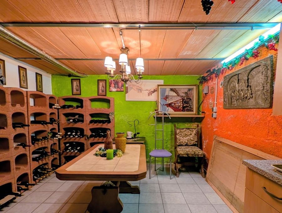 Ein echtes Highlight ist das massive Nebengebäude: Es verfügt über eine integrierte Garage mit elektrischem Tor sowie eine Grube – perfekt für Autobegeisterte oder Hobbyschrauber. Zwei zusätzliche Räume eignen sich hervorragend als Werkstatt oder Hobbyraum. Im Untergeschoss des Nebengebäudes befindet sich außerdem ein separater Kellerraum, der sich als Lager nutzen lässt.