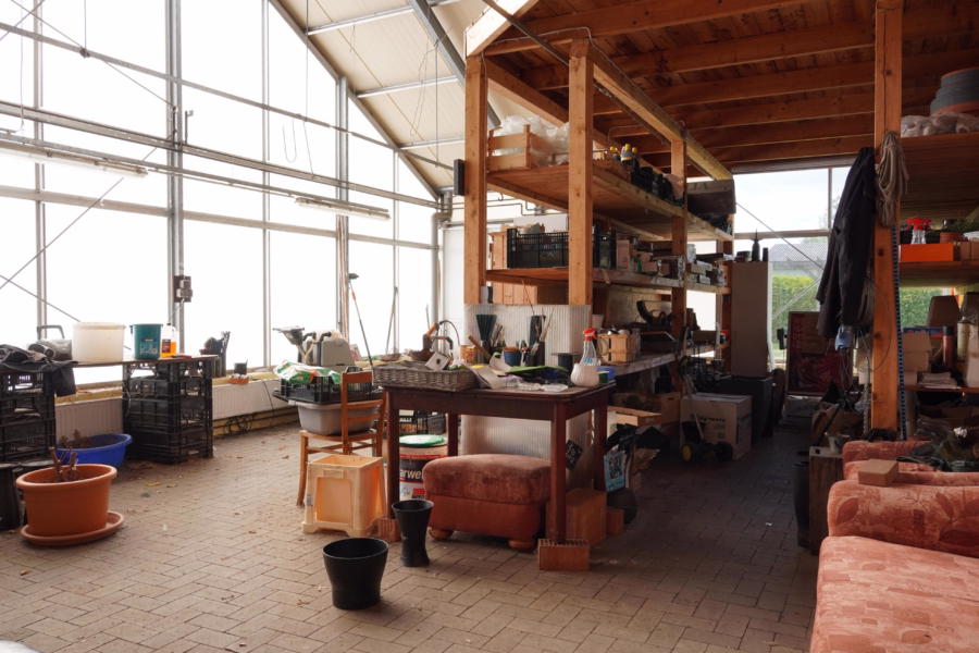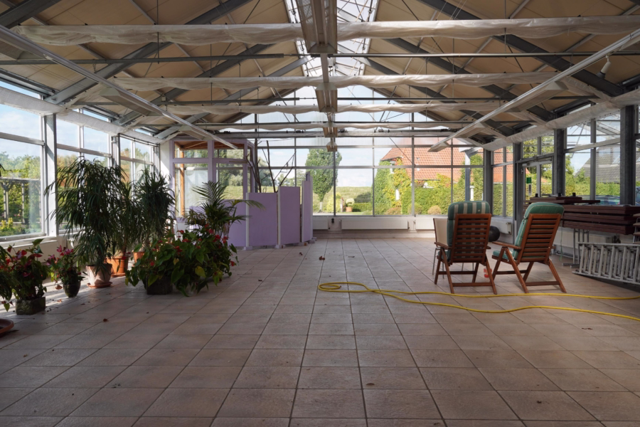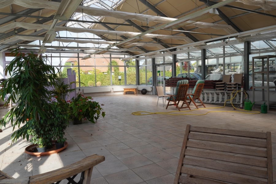 Auf dem Grundstück befinden sich zudem umfangreiche Gewerbeflächen mit einer Gesamtgröße von ca. 463,44 m². Dazu kommen u. a. Gewächshäuser mit ca. 340 m² Fläche sowie ein Vordach mit ca. 95,2 m². Diese Flächen eröffnen vielfältige Möglichkeiten – sei es zur Wiederaufnahme des gärtnerischen Betriebs, für Lager- und Werkstattnutzung oder alternative Konzepte.