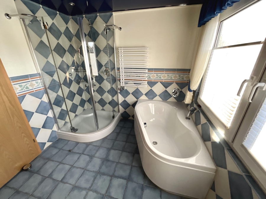 Die Immobilie verfügt über sechs Zimmer, darunter vier gemütliche Schlafzimmer, die für eine Familie viel Platz bieten. Zwei Badezimmer, eins mit Badewanne und das andere mit Dusche, sowie ein Gäste-WC sorgen für einen hohen Komfort. Der Garten ist ein weiterer Höhepunkt des Objekts und lädt zum Entspannen und Spielen ein.