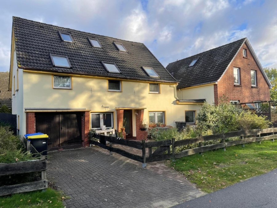 In Oxstedt steht ein interessantes Ensemble auf einem ca. 1.362 m² großen Grundstück zum Verkauf. 4 Wohneinheiten mit insgesamt ca. 260 m² Wohnfläche verteilen sich auf 2 Gebäude.