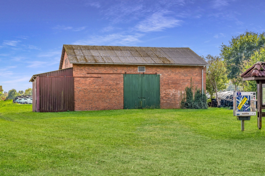 Bei Bedarf besteht zusätzlich die Möglichkeit, eine landwirtschaftliche Scheune in unmittelbarer Nähe zu erwerben. Die Scheune ist derzeit vermietet und eignet sich perfekt für das Unterstellen von Fahrzeugen und Maschinen.