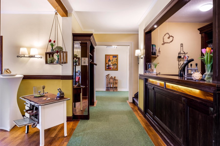 Flexibler Grundriss für Pflege- und Gemeinschaftsräume: 280 m² großer Veranstaltungsraum plus mehrere stilvoll gestaltete, helle Räumlichkeiten (Landhausstube, Alte Gaststube, Wintergarten) – flexibel nutzbar für Gruppenaktivitäten, Events oder Betreuungsangebote