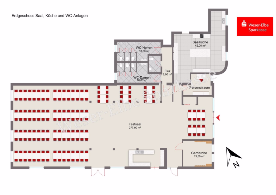 Große Gastronomieflächen mit Küche, sanitären Anlagen sowie 5 Wohnungen und Appartements in Nordseenähe im Landkreis Cuxhaven zwischen Bremen und Cuxhaven