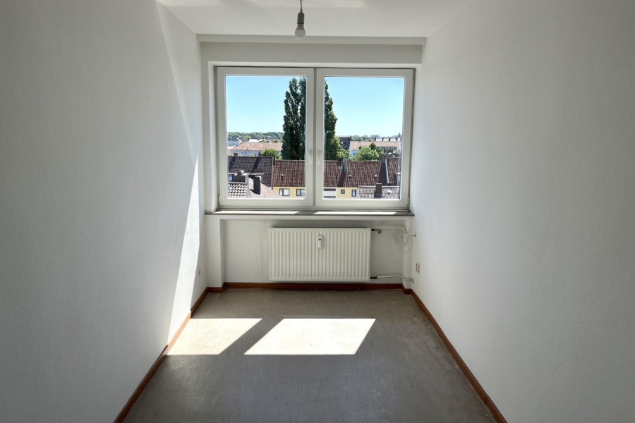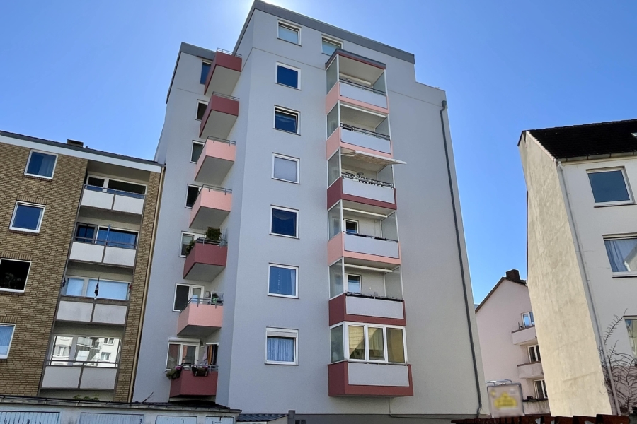 Diese gepflegte 3-Zimmer-Wohnung befindet sich in zentraler Lage von Geestemünde und die Innenstadt ist in wenigen Gehminuten erreichbar. Die sehr helle und im 6. Obergeschoss gelegene Wohnung ist bequem mit dem Fahrstuhl zu erreichen. Sie verfügt über drei gut geschnittene Zimmer, ein innenliegendes Badezimmer mit Badewanne, eine Küche mit Waschmaschinenanschluss und einen Balkon mit Blick zur Weser. Als zusätzliche Nutzfläche stehen ein Kellerraum, Waschmaschinenplatz sowie ein gemeinschaftlich zu nutzender Trockenraum zur Verfügung. Positiv zu erwähnen sind die bereits ausgetauschten Fenster, die Gaszentralheizung aus ca. 2013 und der Fahrstuhl, dessen Erneuerung bereits beschlossen wurde. Zuletzt war die Wohnung 3 Jahre durchgängig vermietet und wird nun nach Mieterkündigung frei, sodass ein Verkauf im Leerstand möglich ist.