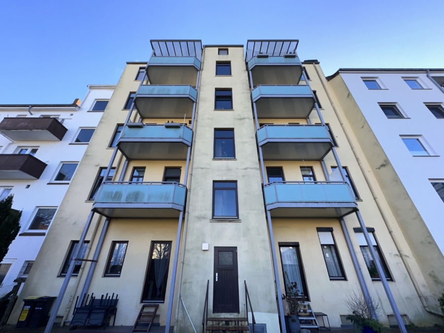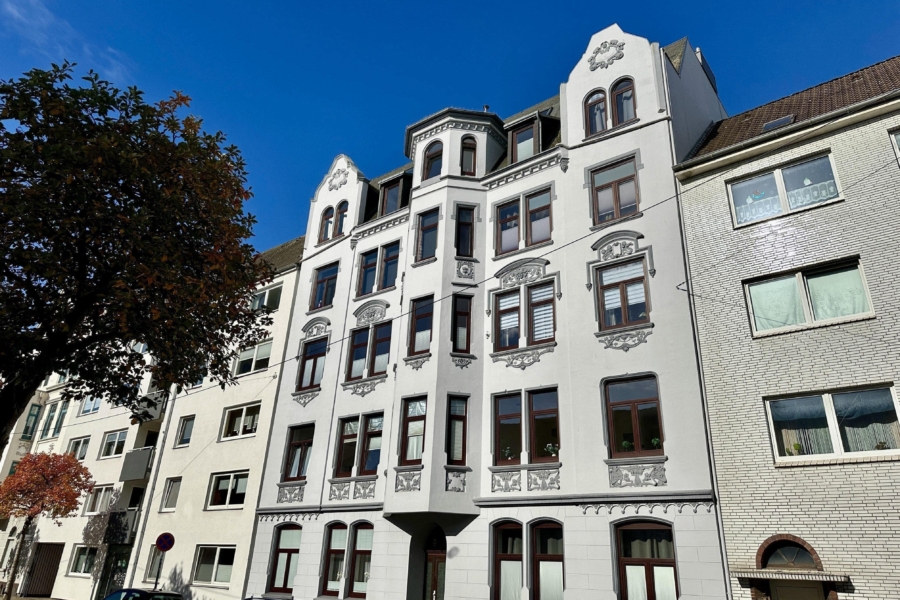 Diese Eigentumswohnung in zentraler Lage im Stadtteil Bremerhaven-Geestemünde verfügt über einen nicht alltäglichen Grundriss. Auf ca. 82,19 m² können Sie Ihr Leben in zentraler Lage genießen. Das Erker-Wohnzimmer verfügt zudem über einen Kaminofen, so dass sich die kalten Winterabende erholsam genießen lassen. Ein Schlafzimmer, ein weiteres Zimmer mit Zugang zum Balkon sowie eine offene Küche zum Wohnzimmer warten auf einen neuen Eigentümer. Das großzügige, modernisierte Wannen-Duschbad verfügt über einen Waschmaschinenanschluss. Im Hof befindet sich ein Fahrradschuppen und die Stellflächen für die Mülltonnen. Die Wohnung wurde regelmäßig renoviert und ist in einem sehr gepflegten Zustand. Die Heizungsanlage wurde zudem bereits im August 2025 ausgetauscht. Die Lage dieser Immobilie liegt sehr zentral und somit sind der Bahnhof, die Innenstadt sowie verschiedene Einkaufsmöglichkeiten, Bushaltestellen und vieles mehr fußläufig erreichbar.