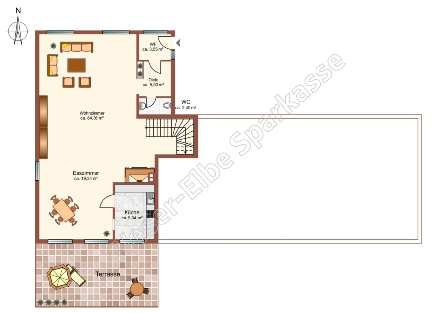 Erdgeschoss (ca. 125 m² Wohnfläche):